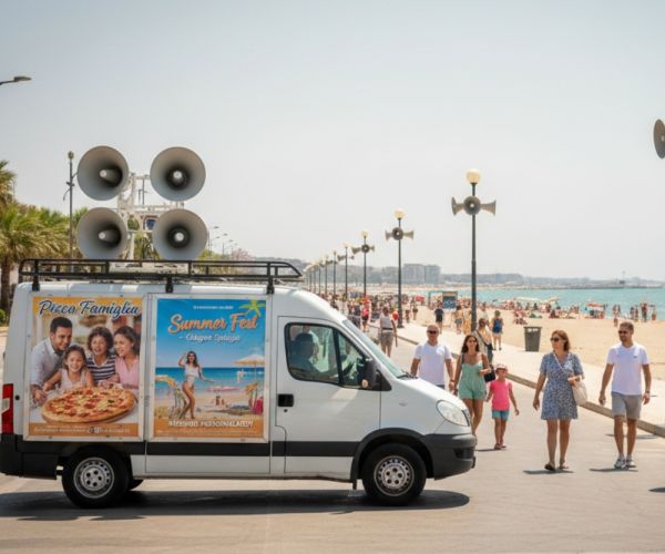 Offriamo servizi di pubblicità sonora con automezzo amplificato da 400W a diffusione 360°, per portare il tuo messaggio direttamente sul territorio con copertura mirata, audio chiaro e impatto efficace ma non invasivo. Gli spot sono personalizzabili e possono essere affiancati da pubblicità visiva con manifesti laterali sul veicolo. Disponibile anche la registrazione professionale degli spot audio.